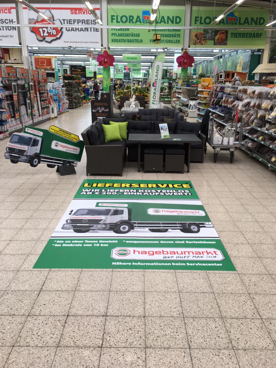 Egal ob Sie ein Poster an das Einkaufswagenhäuschen geklebt, oder einen Ganghänger von der Decke abgehängt haben wollen oder den kompletten Markt um flaggen wollen, wir stehen Ihnen professionell zur Verfügung.